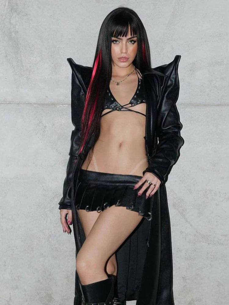 Solid PU Leather A-line Skirt