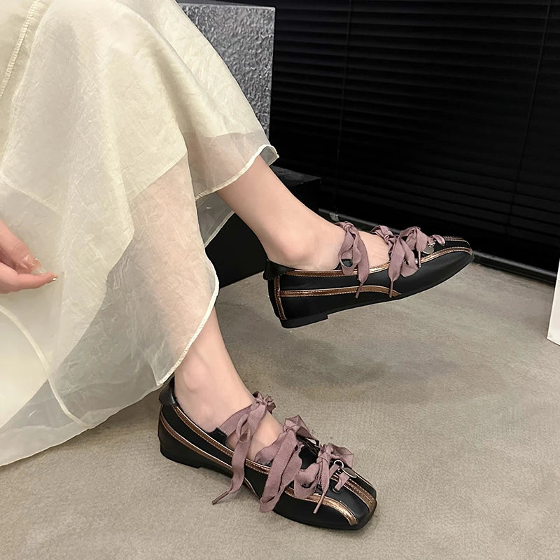 Spring Color Matching Small Square Bow Lazy Slip-On Flat