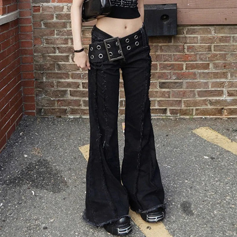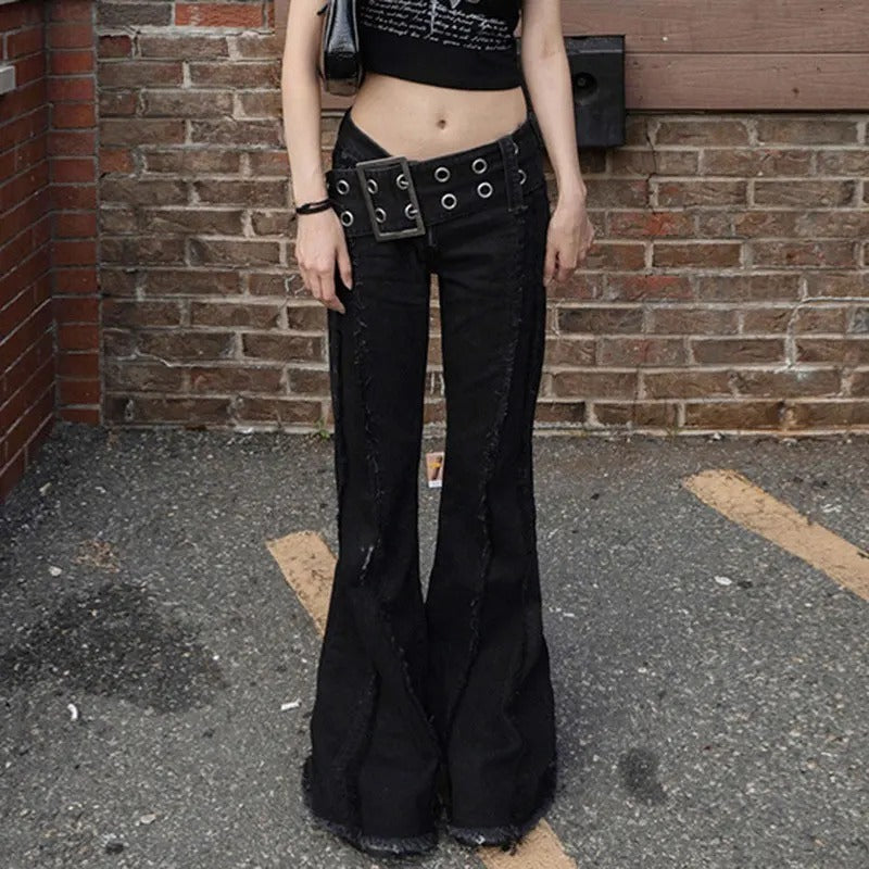 Studded Waistband Black Pants
