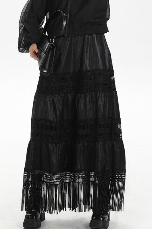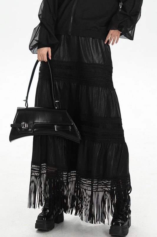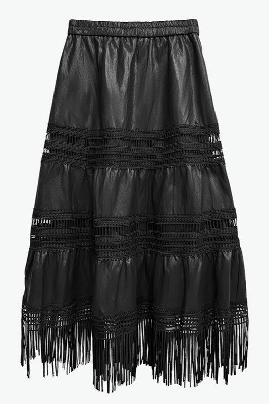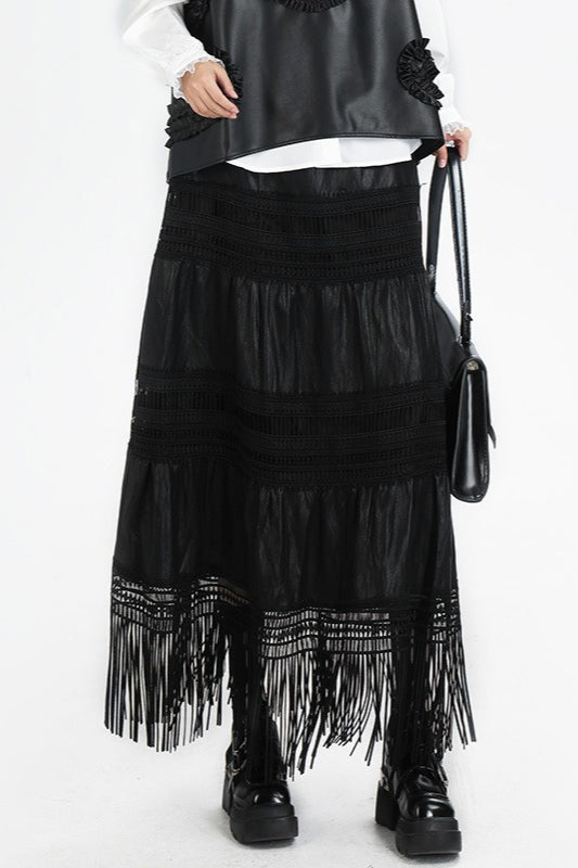 Increase quantity for Tassel PU Leather Punk A-Line Slim Skirt