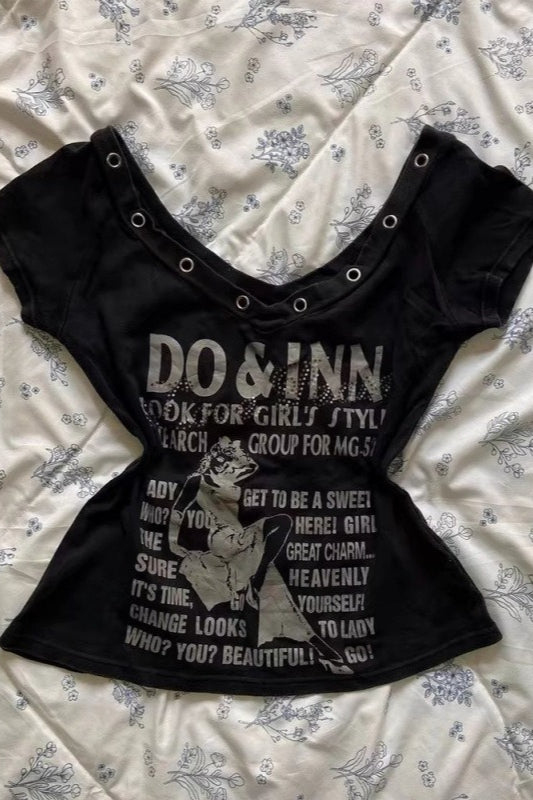 Y2K Vintage Graphic Fake Two-Piece Slim Cami T-shirt
