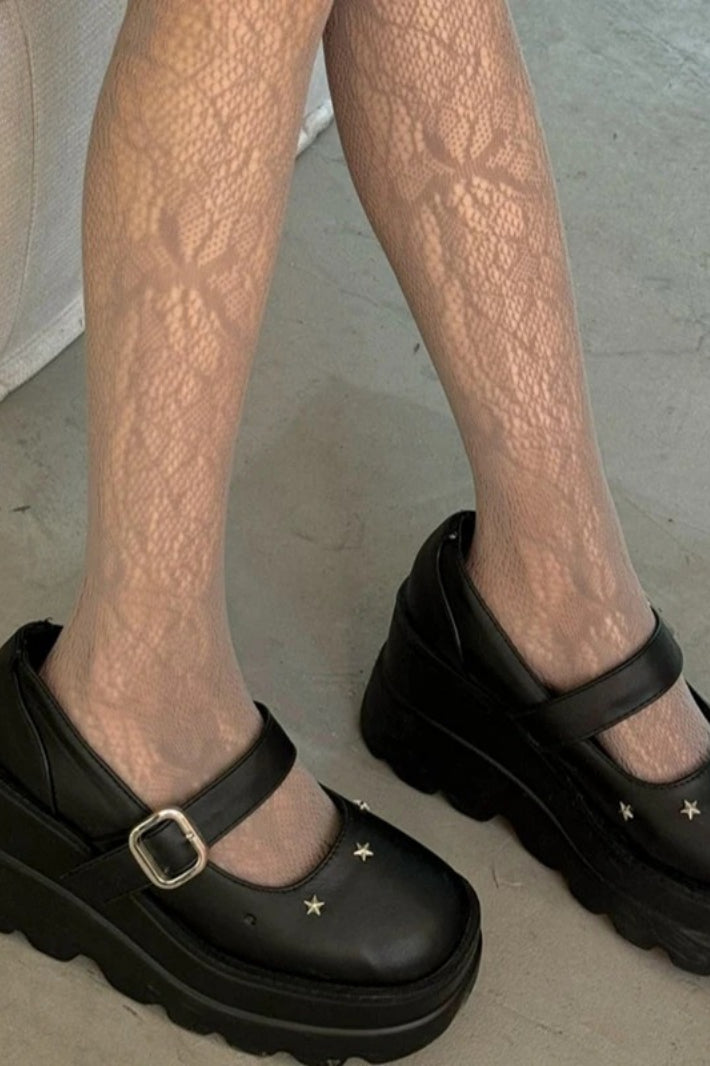 Increase quantity for Vintage Butterfly Jacquard Fishnet High Tights