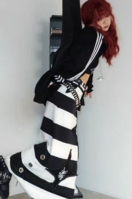 Increase quantity for Vintage Punk Skull Print Maxi Skirt