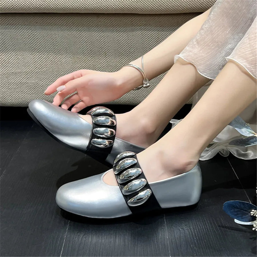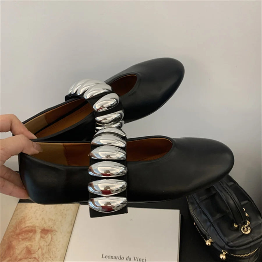 White Ballet Flats Comfortable Metal Button Espadrilles Flat