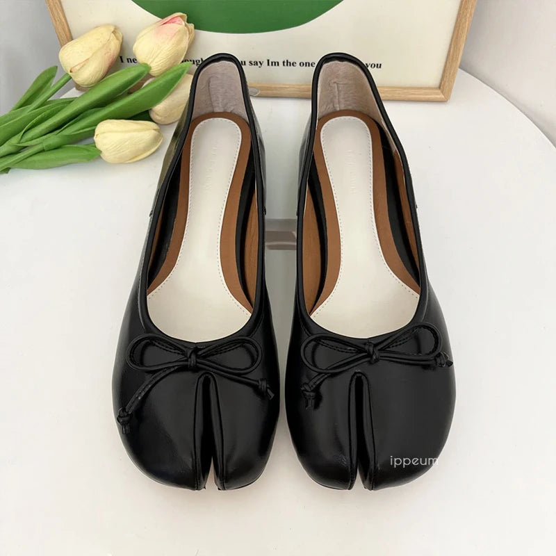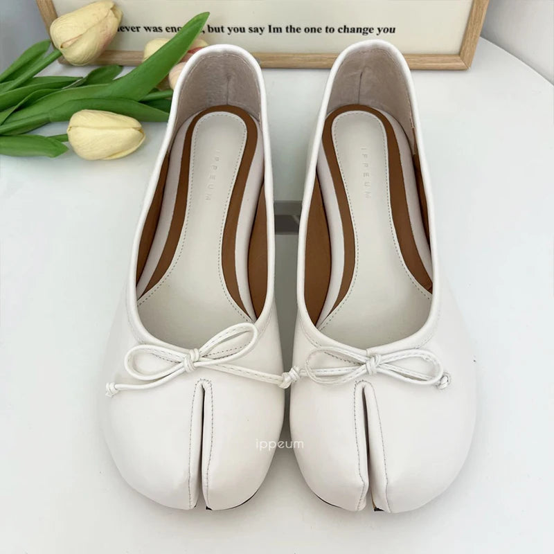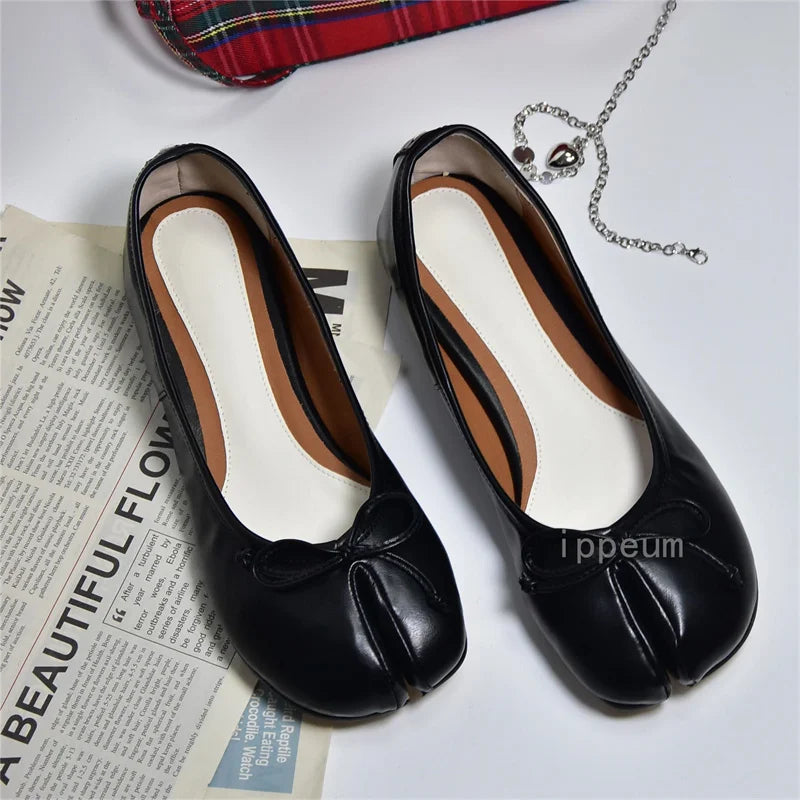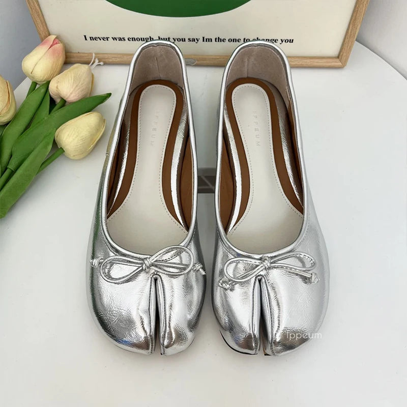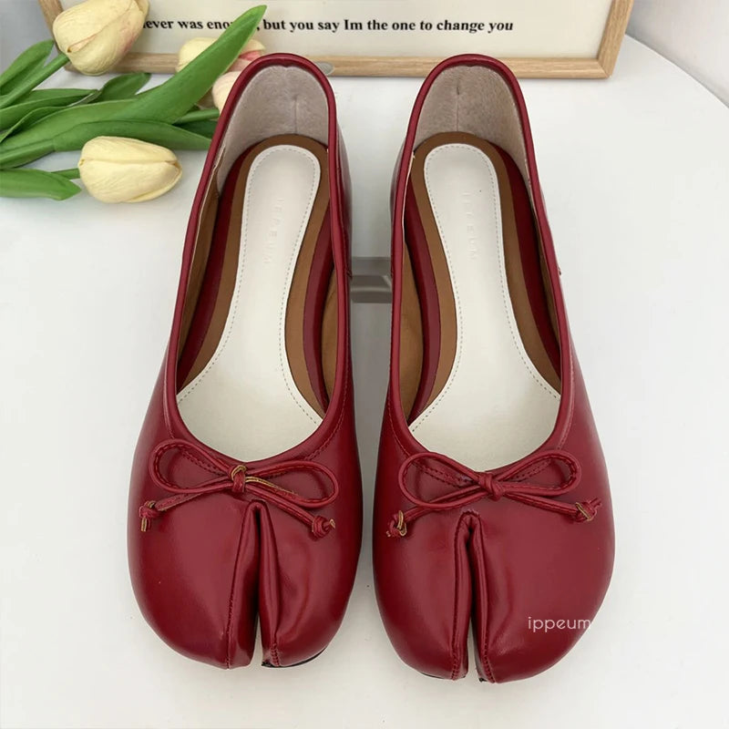 Women Red PU Leather Split Toe Ballet Flat
