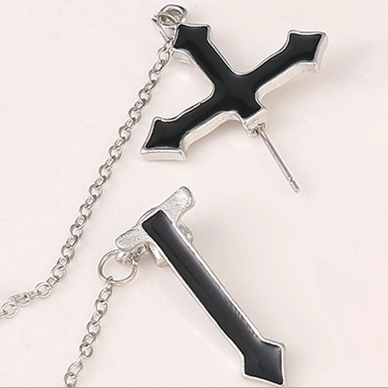 Y2K Goth Heart Cross Red Zircon Tassel Earring