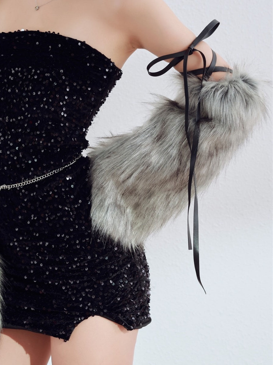Decrease quantity for Y2K Millennial Hot Girl Subculture Faux Fur Strapped Gloves